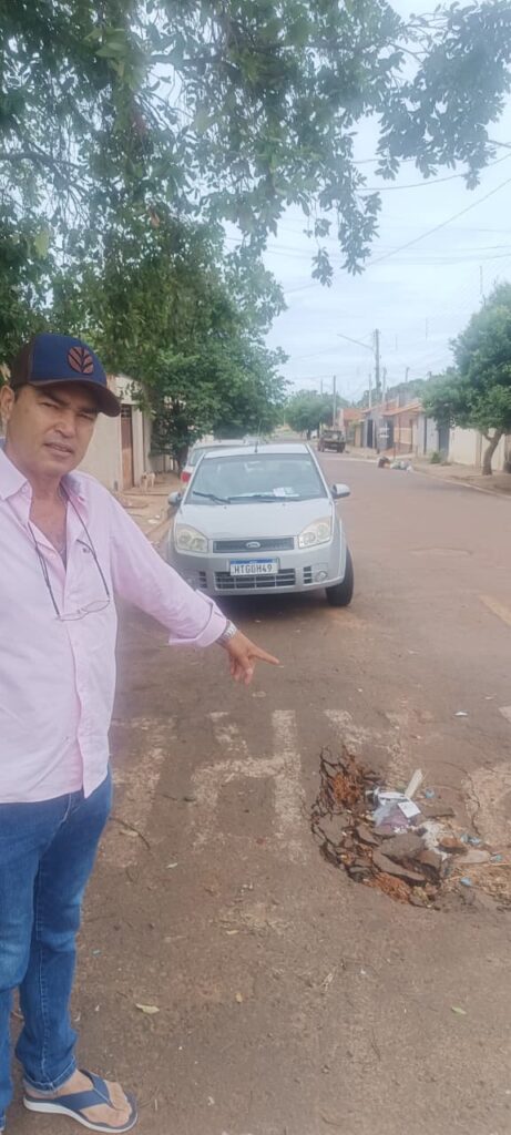 Outro problema identificado durante a visita diz respeito a uma intervenção recente na via fluvial da Rua 20. De acordo com o vereador, uma fundação executada no local acabou deixando a pista em condições irregulares, dificultando o tráfego e comprometendo a segurança dos usuários.